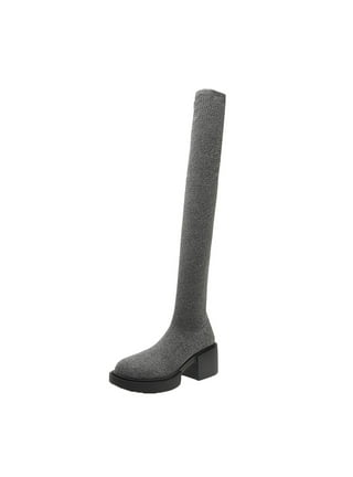 Knitted Rib Block Heel Thigh High Boot Boohoo